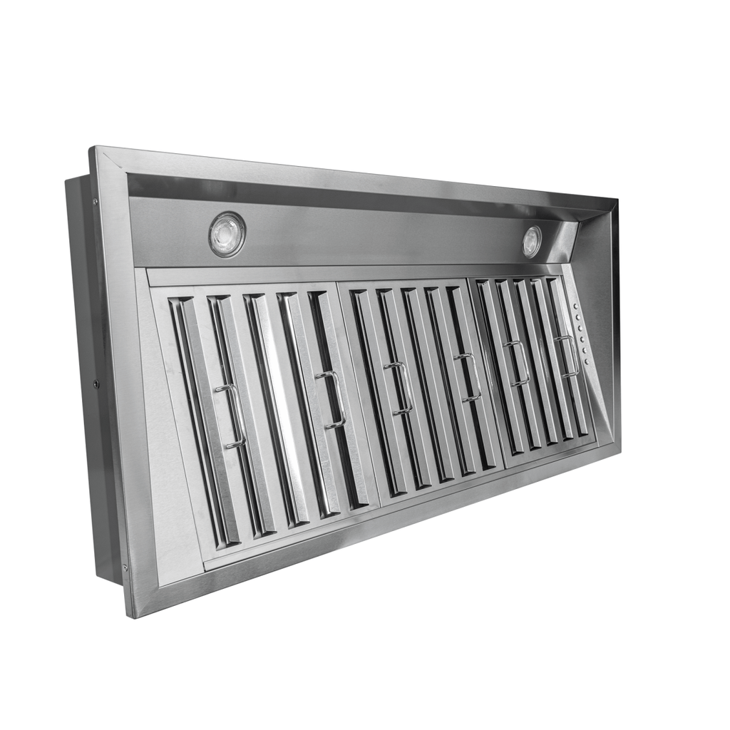 The PLJL INS range hood insert delivers powerful, quiet performance with your choice of a 600 CFM single blower or 1200 CFM dual blowers, operating at just 7 sones (about the level of normal conversation). Front-mounted LED lights provide excellent lighting, while the side control panel with four speeds is easy to access. Dishwasher-safe baffle filters make maintenance simple. Reliable, stylish, and efficient, the PLJL INS is the perfect insert for your custom hood.
