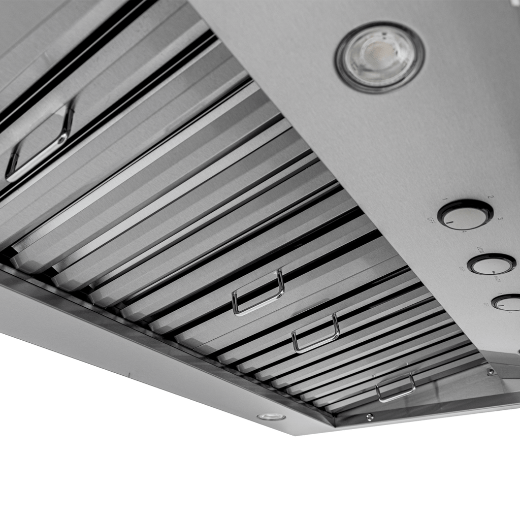 Enjoy the convenience of streamlined maintenance with our dishwasher-safe filters. These easy-to-remove filters are built to withstand the rigors of your dishwasher, providing a hassle-free way to eliminate grease and odors absorbed during cooking. Just slide them out and let your dishwasher do the work, keeping your range hood performing at its best with minimal effort. - Only 7 Sones / 56.06 dB on Max Speed