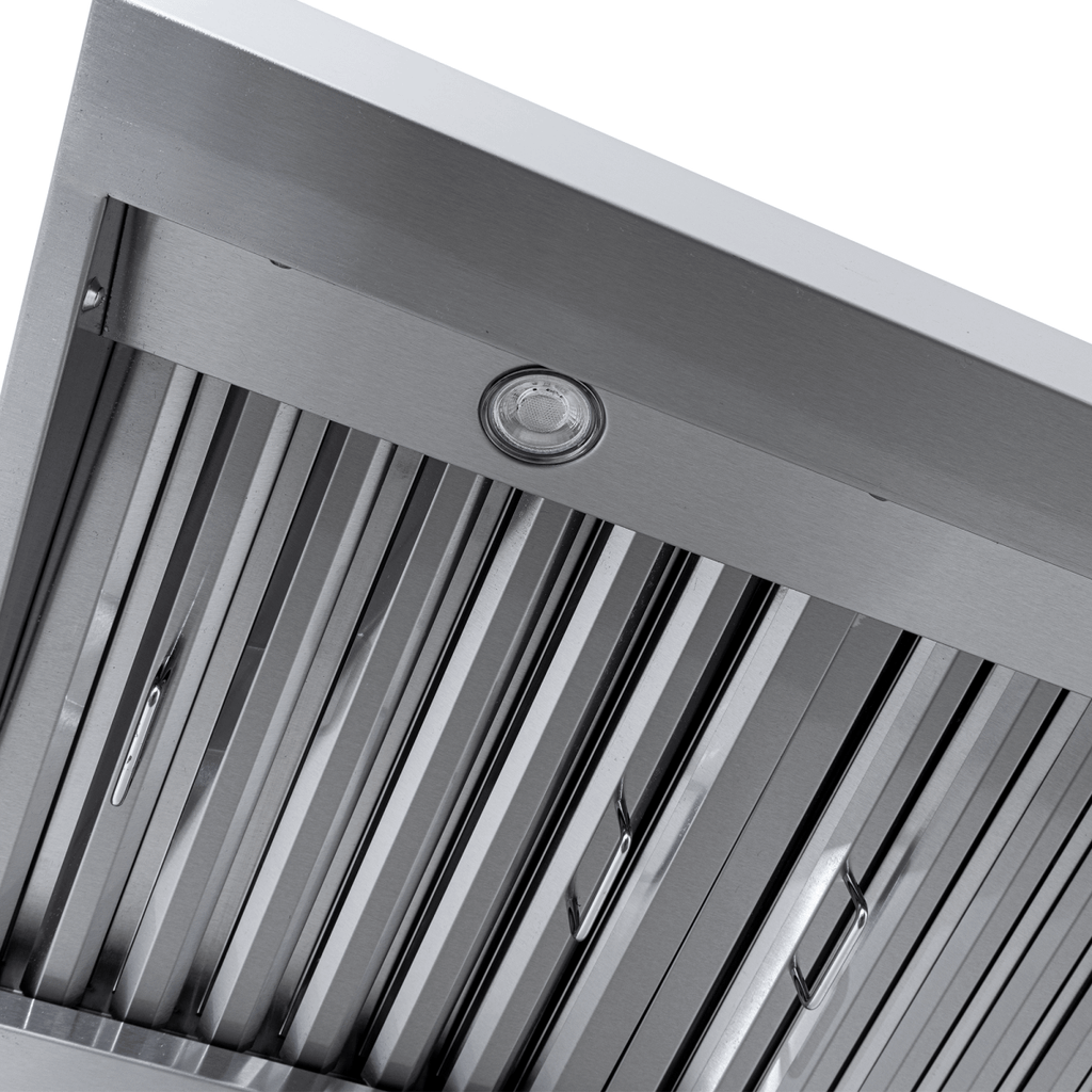 The PLJW 105 is a beautiful addition to your small outdoor kitchen. If you own a barbecue grill, this is the perfect vent hood for you. It is designed specifically to handle the heavy amount of smoke and grease produced by grills. The outdoor-rated 105 model features a robust 1000 CFM single blower or 2000 CFM dual blower to handle all your cooking needs. With four different speeds, it’s a versatile option for your outdoor kitchen. Not to mention that it runs quietly, at just seven sones. The stainless steel push buttons are easy to use; you can control the blower power as well as the bright LED lights. In addition, the stainless steel baffle filters are dishwasher-safe, so after about a few weeks of use, all you need to do is place them in your dishwasher for a thorough clean. Jumpstart your outdoor kitchen renovation with our sleek PLJW 105 304 SS wall range hood.