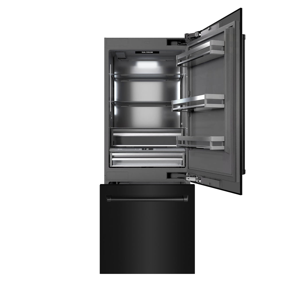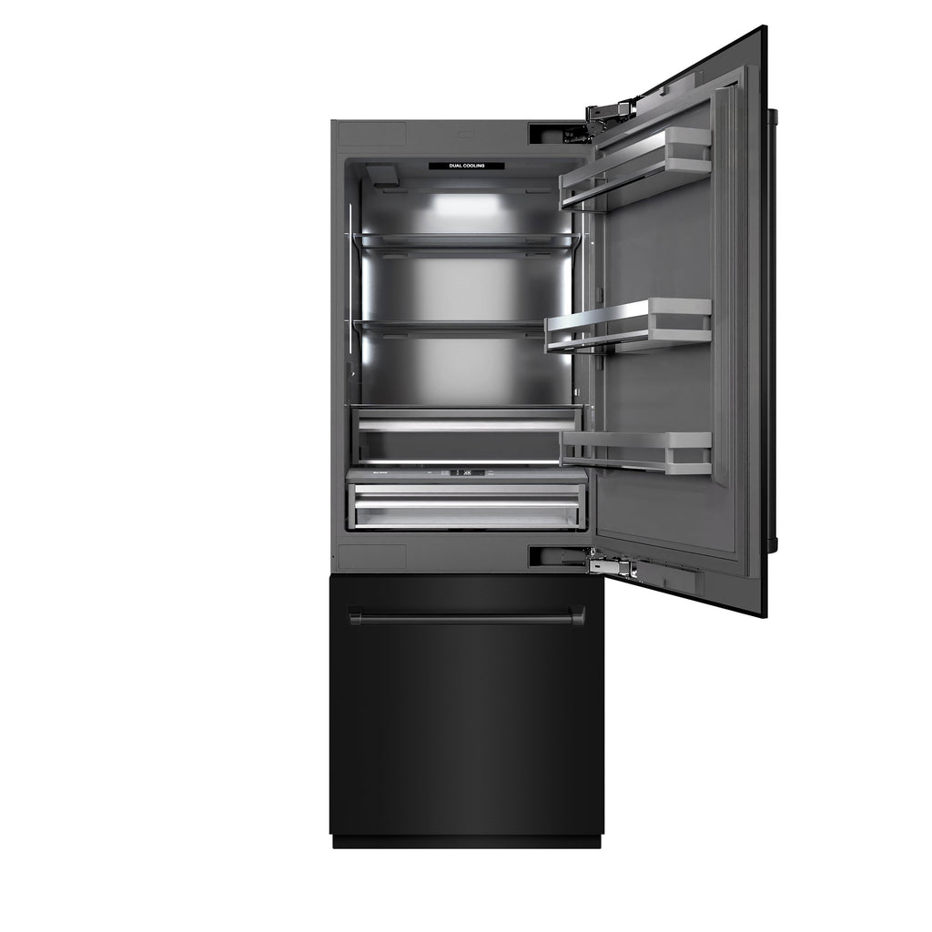 ZLINE 30 in. 16.1 cu. ft. Built-In Bottom Freezer Refrigerator with Water Dispenser and Ice Maker in Black Stainless Steel with Graphite Gray Interior (GRBIV-BS-30)
