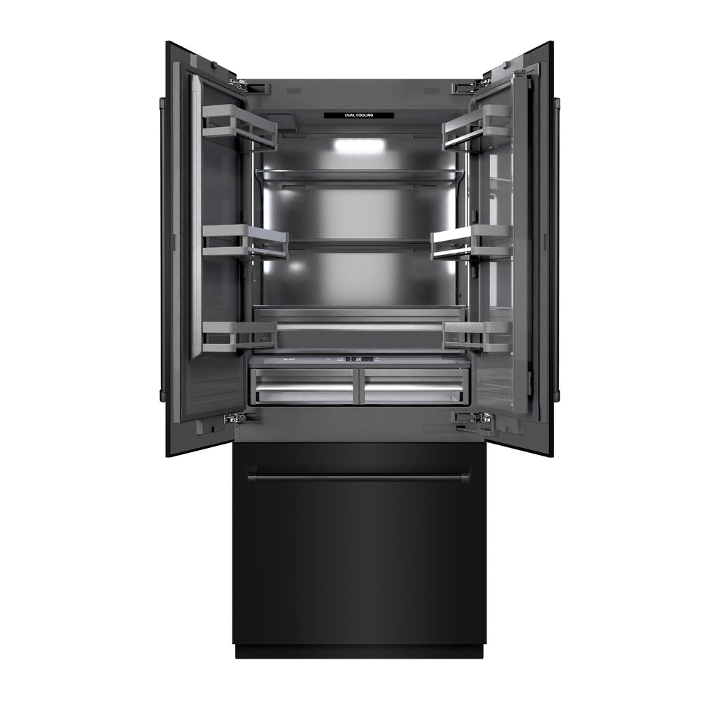 ZLINE 36 in. 19.6 cu. ft. French Door Built-In Bottom Freezer Refrigerator with Water Dispenser and Ice Maker in Black Stainless Steel with Graphite Gray Interior (GRBIV-BS-36)