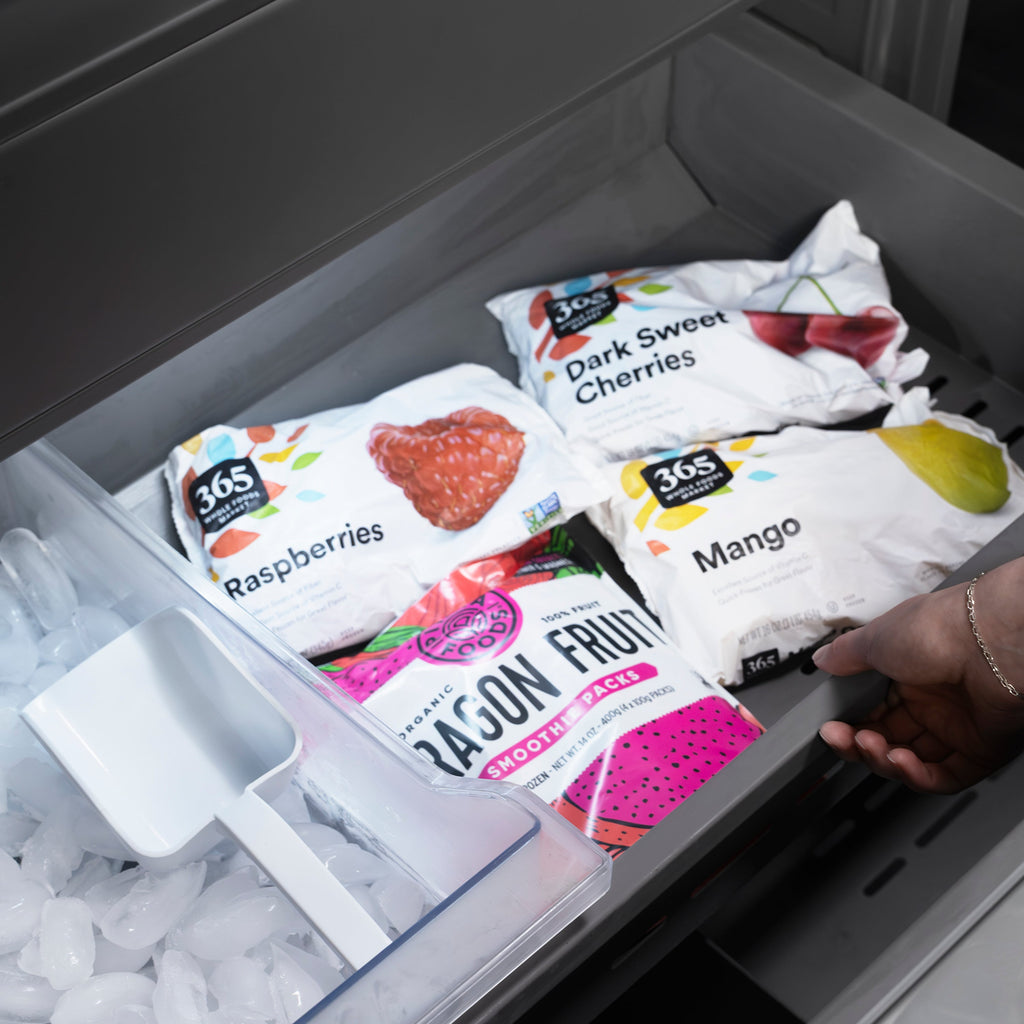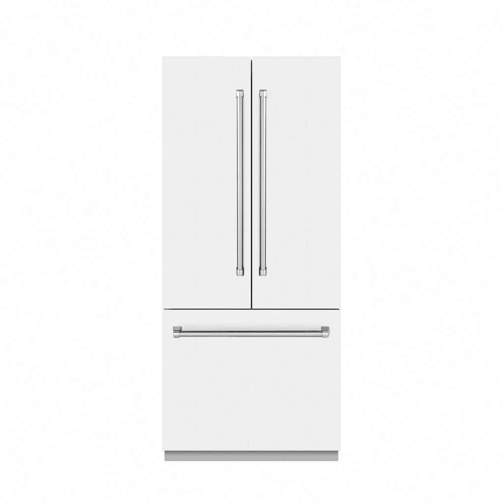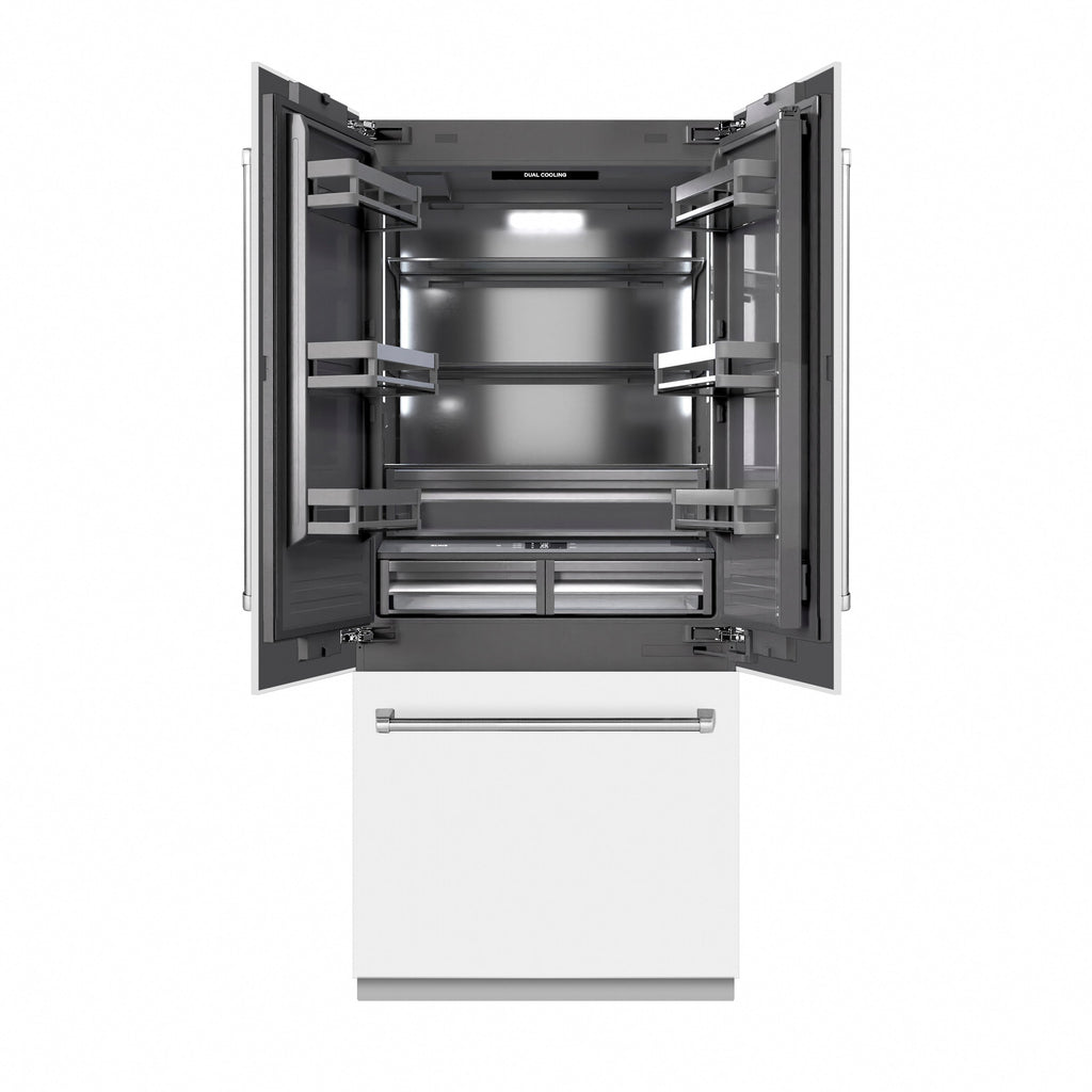 ZLINE 36 in. 19.6 cu. ft. French Door Built-In Bottom Freezer Refrigerator with Water Dispenser and Ice Maker in White Matte with Graphite Gray Interior (GRBIV-WM-36)