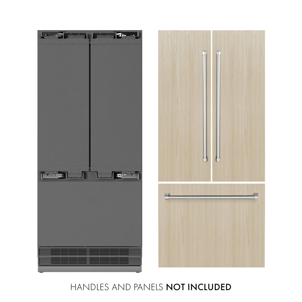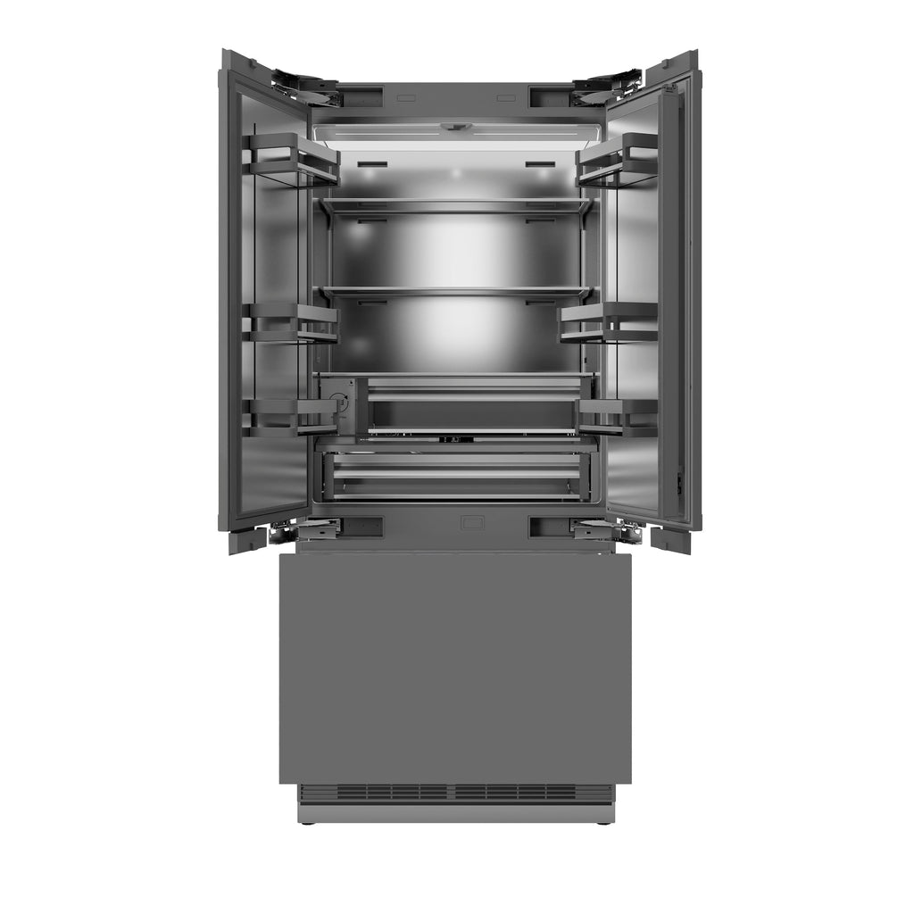 ZLINE 36 in. 19.6 cu. ft. Panel Ready French Door Built-In Bottom Freezer Refrigerator with Water Dispenser and Ice Maker with Stainless Steel Interior (SRBIV-36)