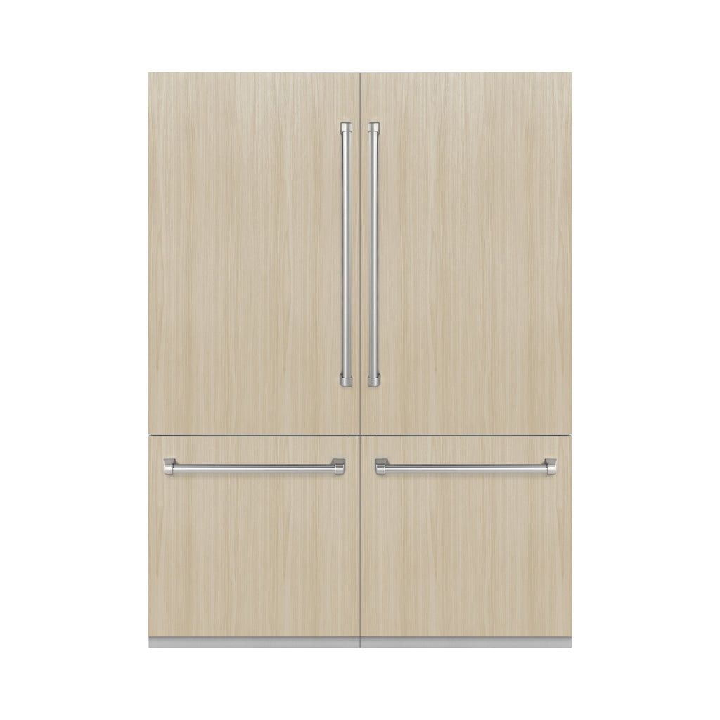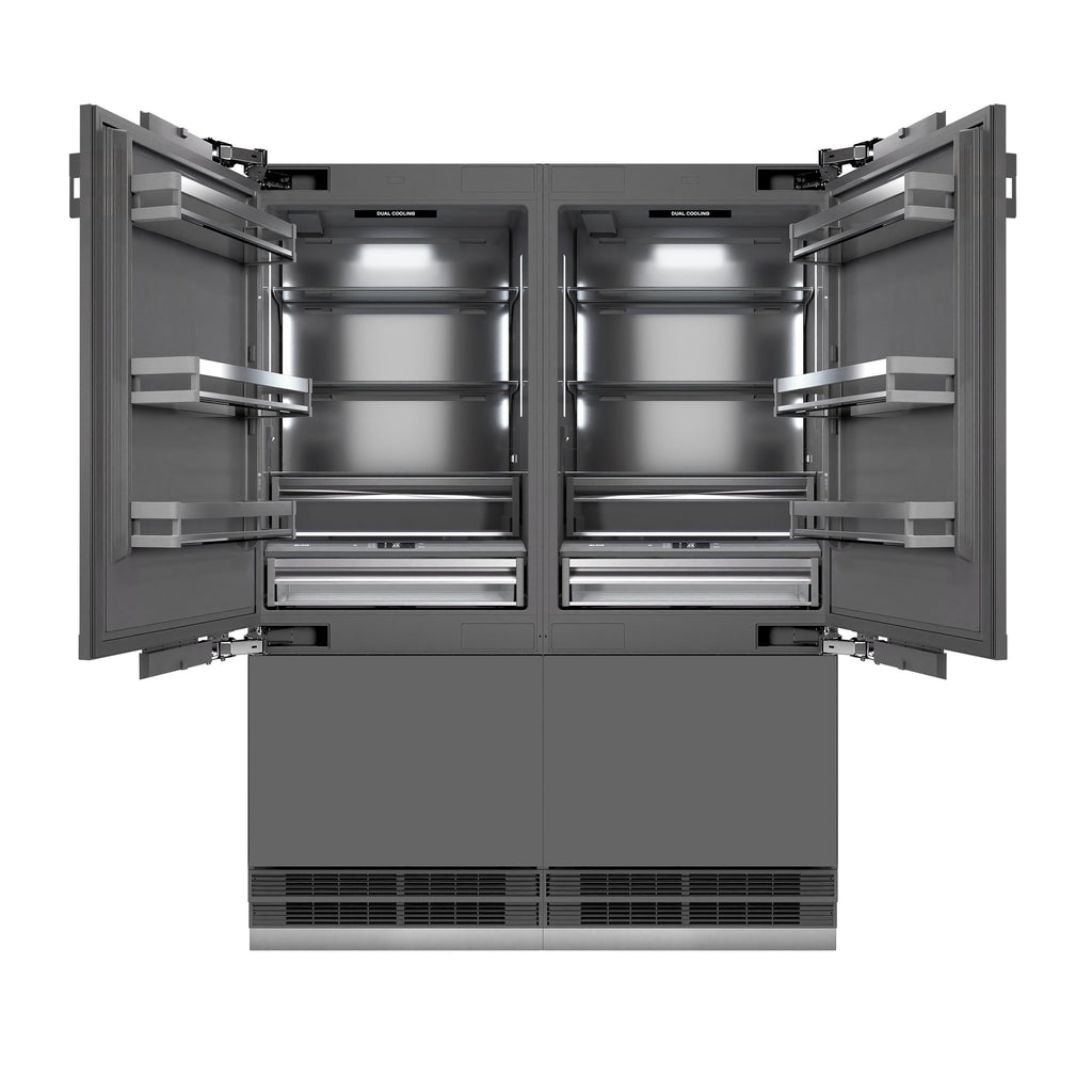 ZLINE 60 in. 32.2 cu. ft. Panel Ready French Door Built-In Bottom Freezer Refrigerator with Water Dispensers and Ice Makers with Graphite Gray Interior (GRBIV-60)