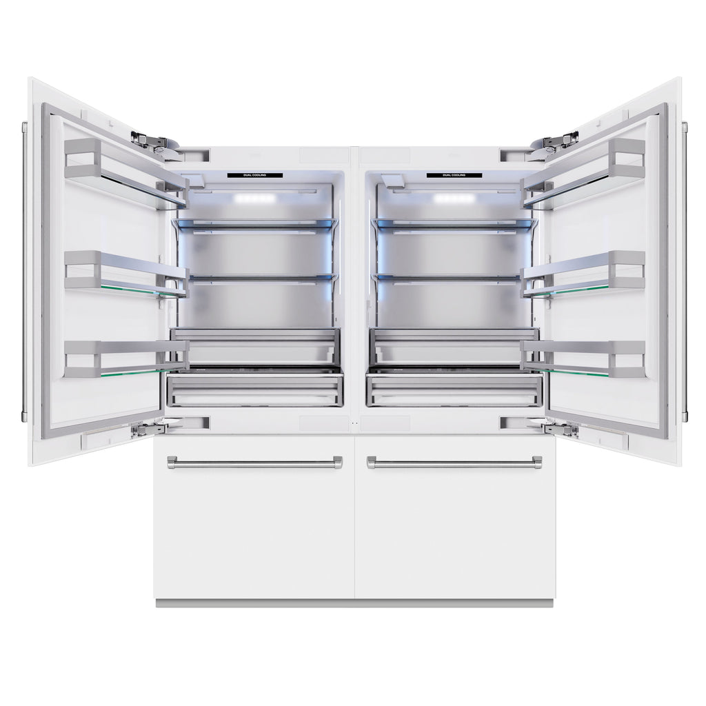 ZLINE 72 in. 39.6 cu. ft. French Door Built-In Bottom Freezer Refrigerator with Water Dispensers and Ice Makers in White Matte (RBIT-WM-72)