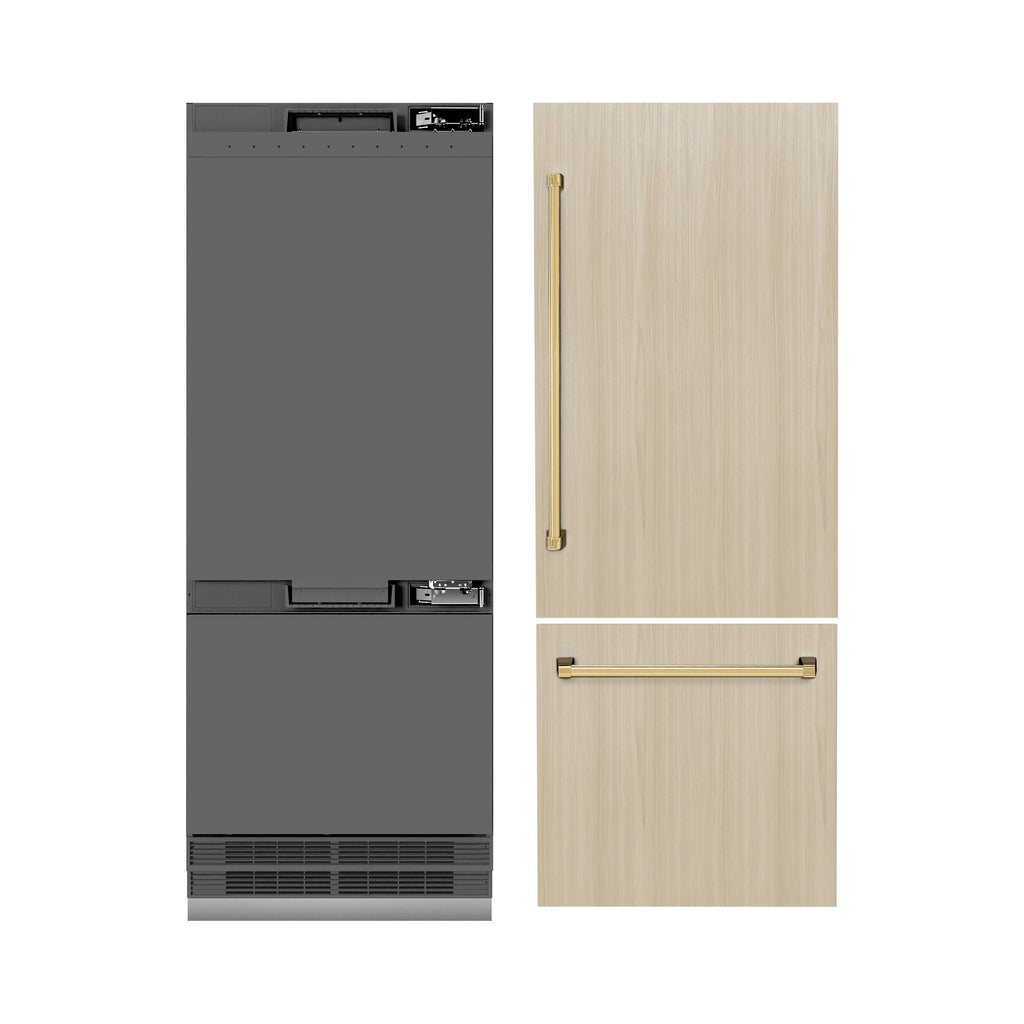 ZLINE Autograph Edition 30 in. 16.1 cu. ft. Panel Ready Built-In Bottom Freezer Refrigerator with Water Dispenser and Ice Maker with Graphite Gray Interior and Polished Gold Accents (GRBIVZ-30-G)