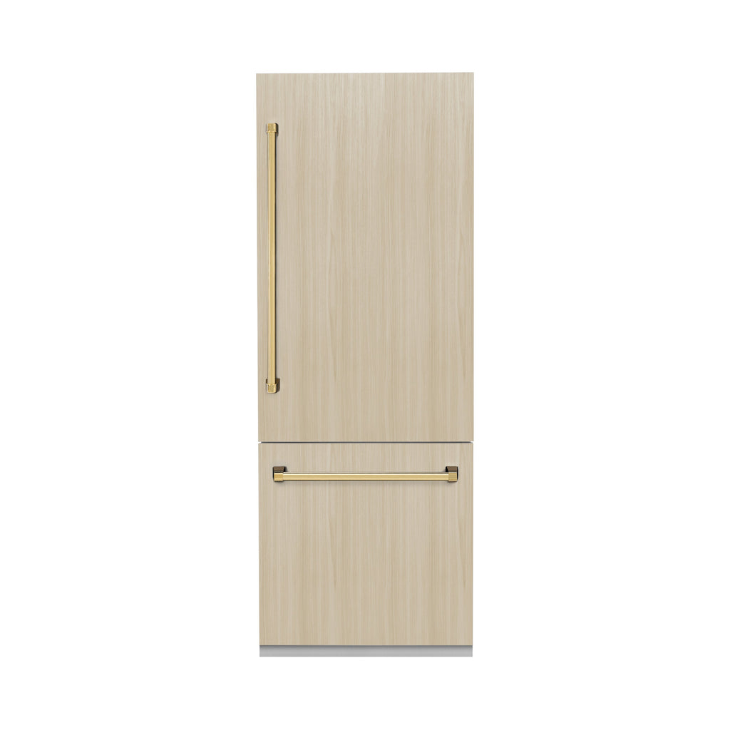 ZLINE Autograph Edition 30 in. 16.1 cu. ft. Panel Ready Built-In Bottom Freezer Refrigerator with Water Dispenser and Ice Maker with Polished Gold Accents (RBIVZ-30-G)