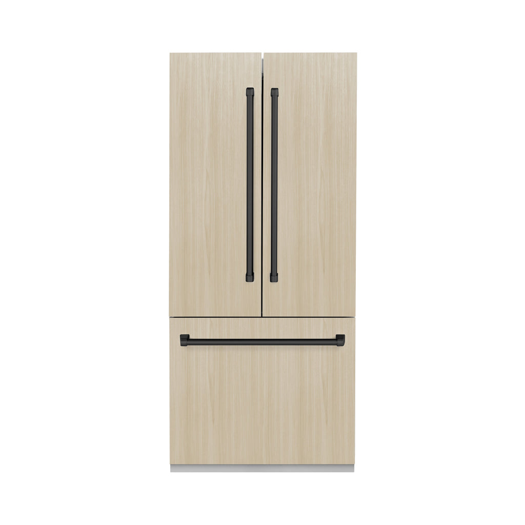 ZLINE Autograph Edition 36 in. 19.6 cu. ft. Panel Ready French Door Built-In Bottom Freezer Refrigerator with Water Dispenser and Ice Maker with Graphite Gray Interior and Matte Black Accents (GRBIVZ-36-MB)