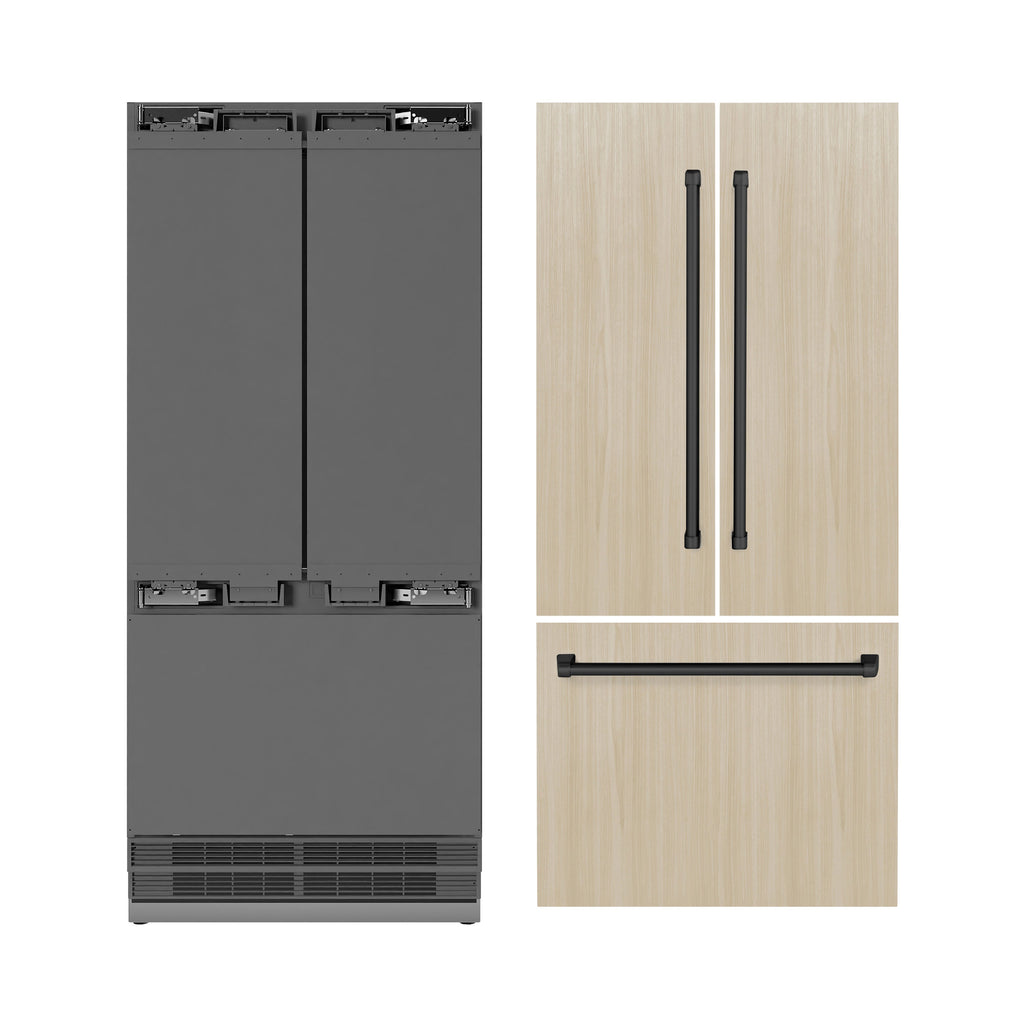 ZLINE Autograph Edition 36 in. 19.6 cu. ft. Panel Ready French Door Built-In Bottom Freezer Refrigerator with Water Dispenser and Ice Maker with Stainless Steel Interior and Matte Black Accents (SRBIVZ-36-MB)