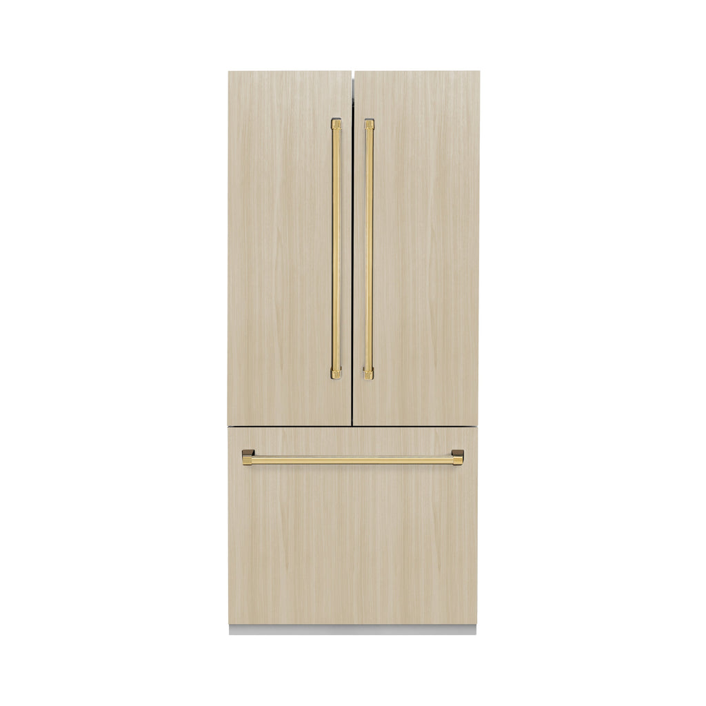 ZLINE Autograph Edition 36 in. 19.6 cu. ft. Panel Ready French Door Built-In Bottom Freezer Refrigerator with Water Dispenser and Ice Maker with Stainless Steel Interior and Polished Gold Accents (SRBIVZ-36-G)