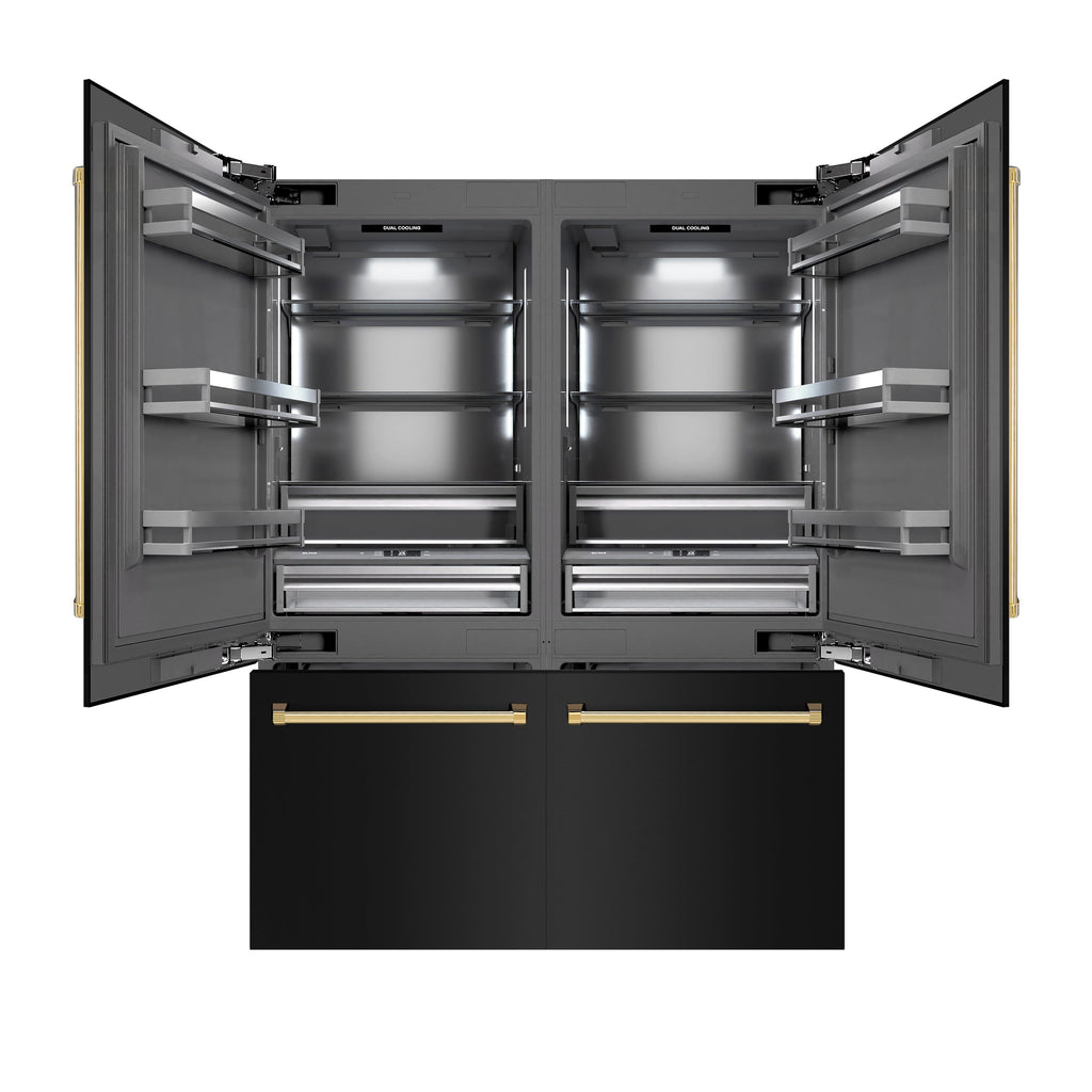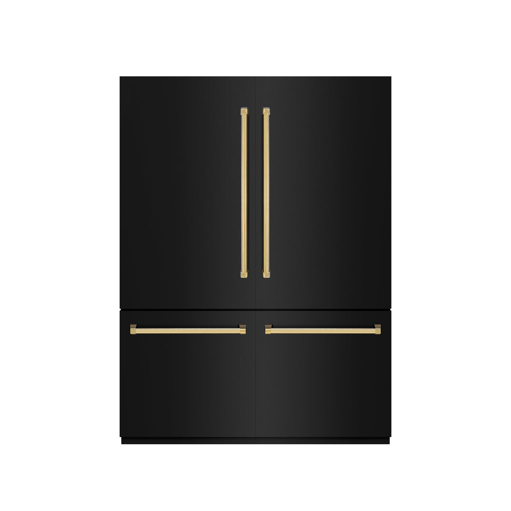 ZLINE Autograph Edition 60 in. 32.2 cu. ft. French Door Built-In Bottom Freezer Refrigerator with Water Dispenser and Ice Maker in Black Stainless Steel with Graphite Gray Interior and Polished Gold Accents (GRBIVZ-BS-60-G)