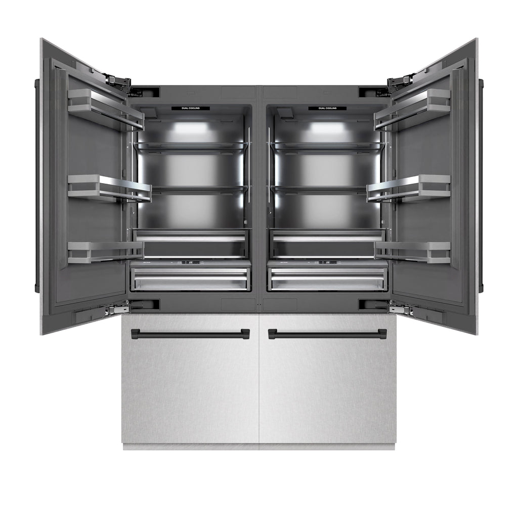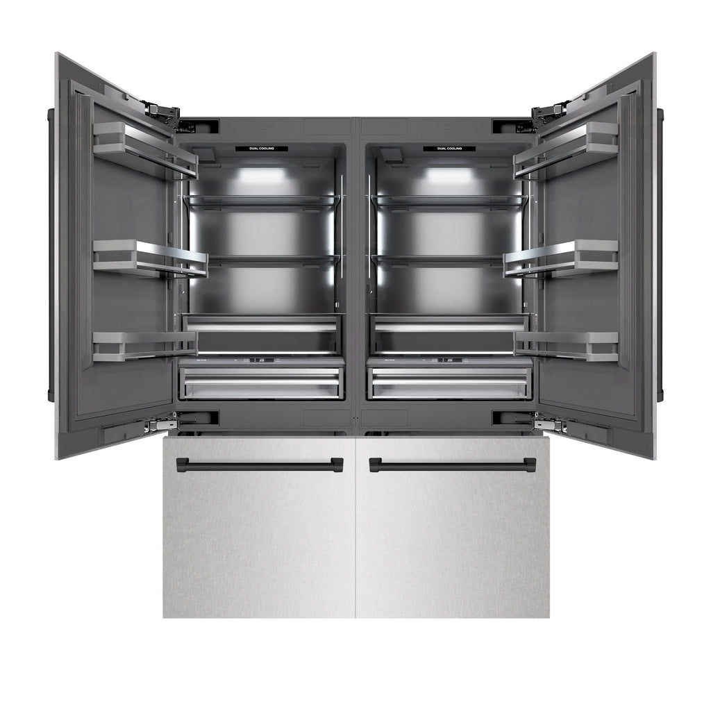 ZLINE Autograph Edition 60 in. 32.2 cu. ft. French Door Built-In Bottom Freezer Refrigerator with Water Dispenser and Ice Maker in DuraSnow® Stainless Steel with Graphite Gray Interior and Matte Black Accents (GRBIVZ-SN-60-MB)