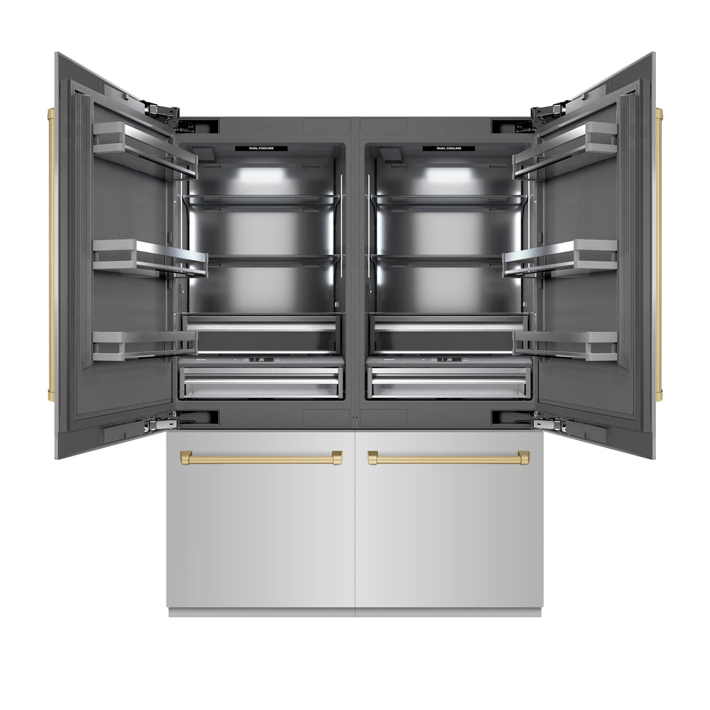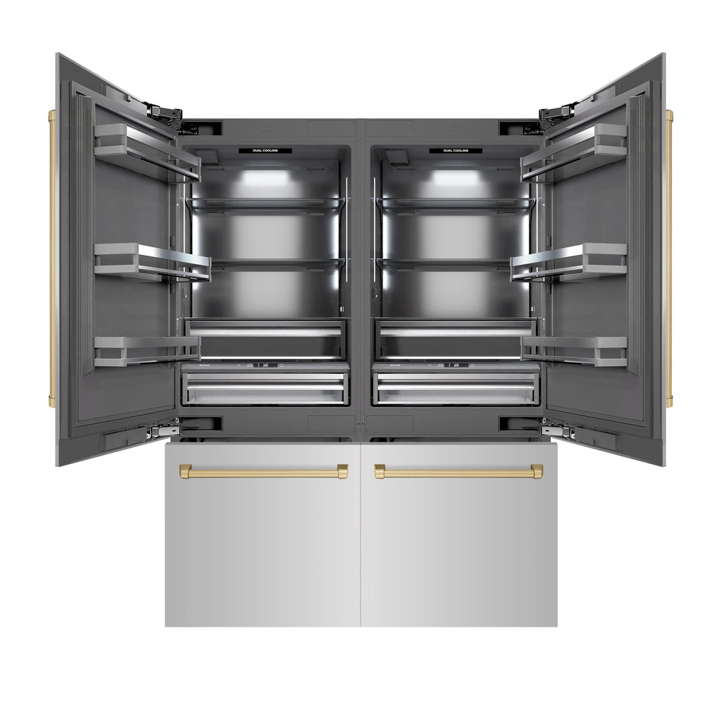 ZLINE Autograph Edition 60 in. 32.2 cu. ft. French Door Built-In Bottom Freezer Refrigerator with Water Dispenser and Ice Maker in Stainless Steel with Graphite Gray Interior and Champagne Bronze Accents (GRBIVZ-304-60CB)