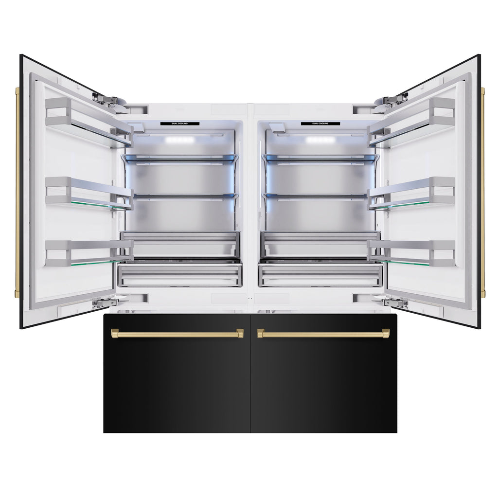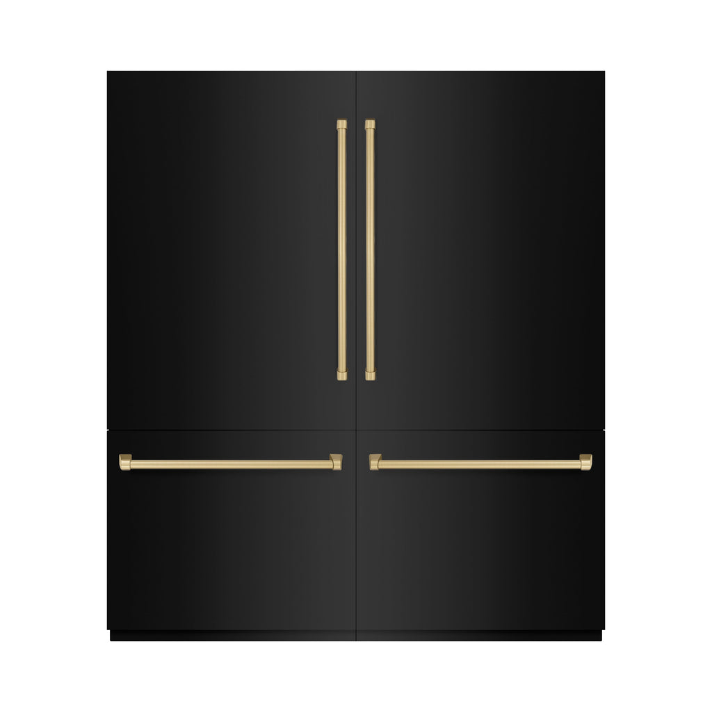 ZLINE Autograph Edition 72 in. 39.6 cu. ft. French Door Built-In Bottom Freezer Refrigerator with Water Dispensers and Ice Makers in Black Stainless Steel and Champagne Bronze Accents (RBITZ-BS-72-CB)