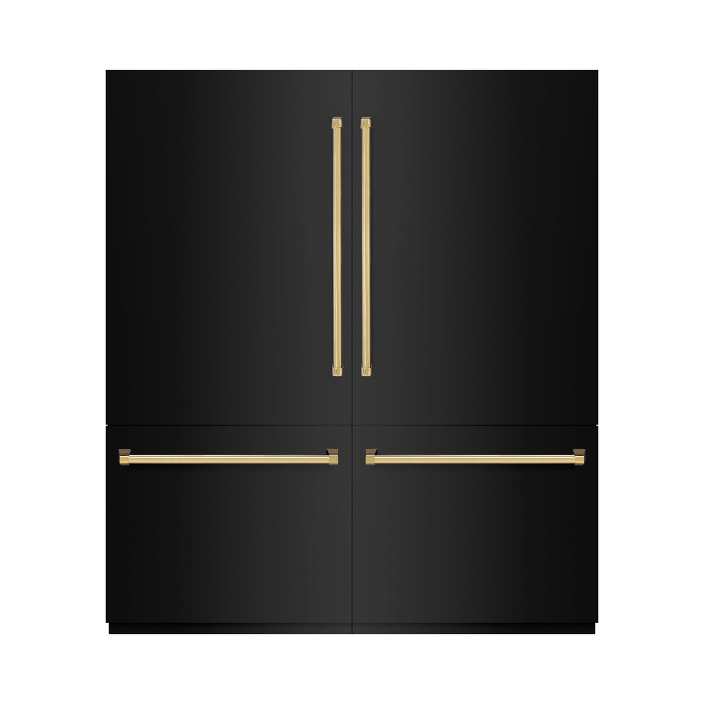 ZLINE Autograph Edition 72 in. 39.6 cu. ft. French Door Built-In Bottom Freezer Refrigerator with Water Dispensers and Ice Makers in Black Stainless Steel with Graphite Gray Interior and Polished Gold Accents (GRBITZ-BS-72-G)