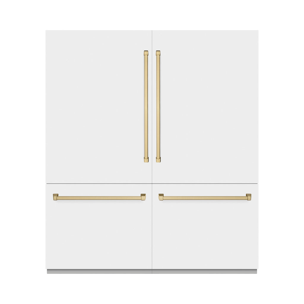 ZLINE Autograph Edition 72 in. 39.6 cu. ft. French Door Built-In Bottom Freezer Refrigerator with Water Dispensers and Ice Makers in White Matte with Graphite Gray Interior and Champagne Bronze Accents (GRBITZ-WM-72-CB)