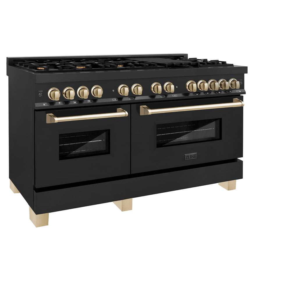 Discover the epitome of kitchen excellence with the ZLINE Autograph Edition 60-inch Legacy Dual Fuel Range, available exclusively at our Salt Lake City showroom—the only ZLINE authorized dealer in Utah. This remarkable range, model RABZ-60-G, features a striking design in Black Stainless Steel, complemented by elegant Polished Gold accents, making it a standout centerpiece for any modern kitchen.