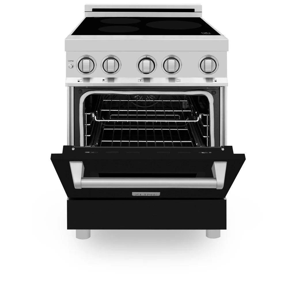 Discover the epitome of culinary excellence at our exclusive Salt Lake City showroom, the only authorized ZLINE dealer in Utah. Introducing the ZLINE RAIND-BLM-24, where luxury meets accessibility. This 24-inch, 2.8 cu. ft. Legacy Induction Range boasts a sleek stainless steel finish complemented by a sophisticated black matte door. The range is engineered with an advanced induction cooktop featuring four high-performance heating elements and an electric convection oven, ensuring precision and efficiency in your kitchen endeavors. The unique Landscape oven door window design adds a touch of elegance, enhancing both aesthetics and functionality.