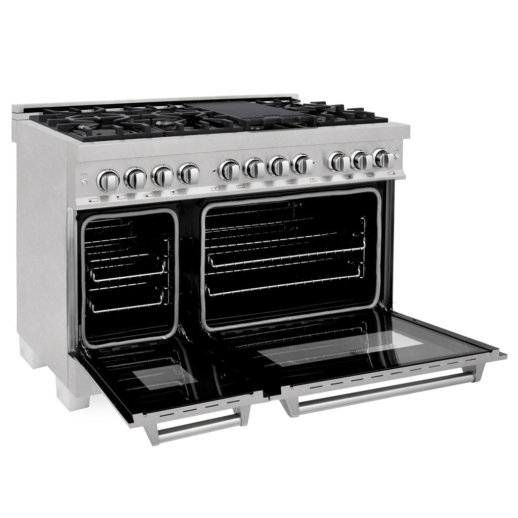 Discover the epitome of style and functionality with the ZLINE RAS-SN-48 Dual Fuel Range, exclusively available at our Salt Lake City showroom—the only authorized ZLINE dealer in Utah. Elevate your culinary experience with this 48-inch masterpiece featuring a 6.0 cu. ft. capacity, designed for those who seek both elegance and efficiency in their kitchen. Crafted from premium DuraSnow® Stainless Steel, this range combines a robust 7-burner gas cooktop, made in Italy, with versatile dual electric ovens, perfect for both convection cooking and traditional baking.